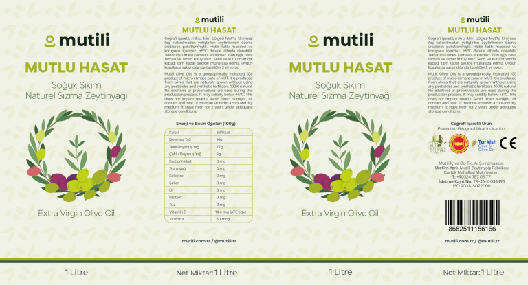 Mutlu Hasat Soğuk Sıkım Zeytinyağı 1 lt – Yeni Sezon